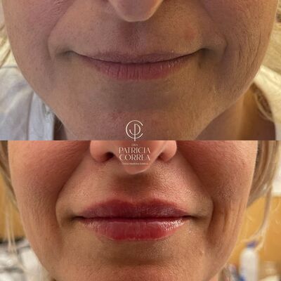 Las fotos de arriba muestran el aumento de labios con ácido hialurónico, efectos antes y después de los tratamientos que se realizaron, por la doctora Patricia Correa especialista en medicina estética.